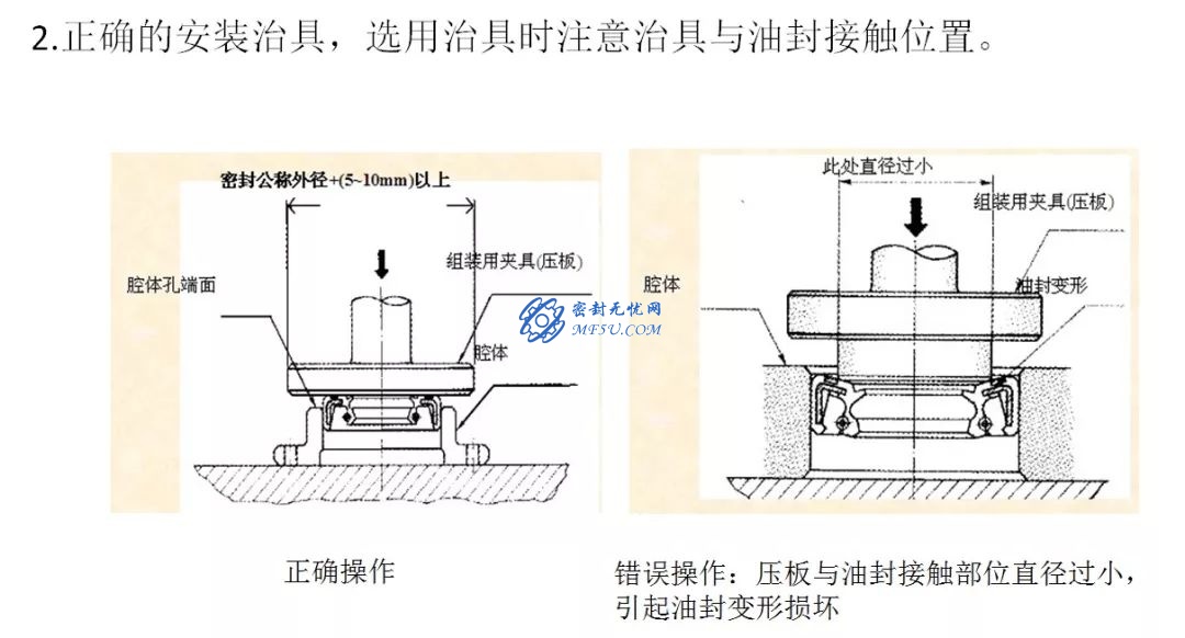 4、安裝油封時(shí),一定要使唇緣端朝向被密封的油液一側(cè),切忌反向裝配。